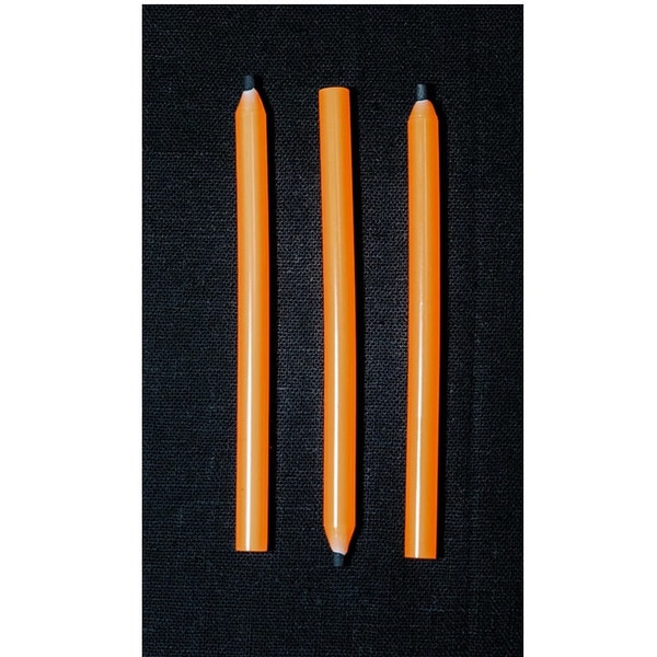 Super flexible, but rigid enough to write with. You can wrap it around your finger. The writing center is a marking polymer, writing like a #2 lead.