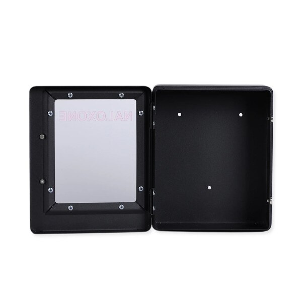 The Naloxone Emergency Kit is a custom made wall mount cabinet for easy and safe access to Naloxone and other medical accessories needed to respond to an opioid overdose emergency in a public setting.