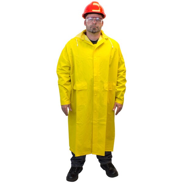 RAIN COATS SKU TR35 PACK: EACH $13.00 Quantity discounts available QuantityPrice (0)No Reviews yet SIZE SMALL MEDIUM LARGE XLARGE 2XLARGE 3XLARGE COLOR YELLOW Quantity -+ Add to Cart Description .35 mm Heavy weight PVCReinforced polyesterFull LengthDetachable hood Specs & Documentation Download Spec Sheet DescriptionSpecs & Documentation Back Description.35 mm Heavy weight PVCReinforced polyesterFull LengthDetachable hood Back Specs & Documentation Download Spec Sheet Ratings & ReviewsNo reviews availableBe the first to Write a Review