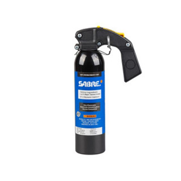 The SABRE Red 1.33% MC 16.0 oz. High Volume Streamer (MK-9) deploys ten (10) full one (1) second bursts at a range of 25 to 30 Ft. The MK-9 utilizes a pistol grip handle with safety tab and pin to prevent accidental discharge. All SABRE MK-9 pins are equipped with a safety lanyard.